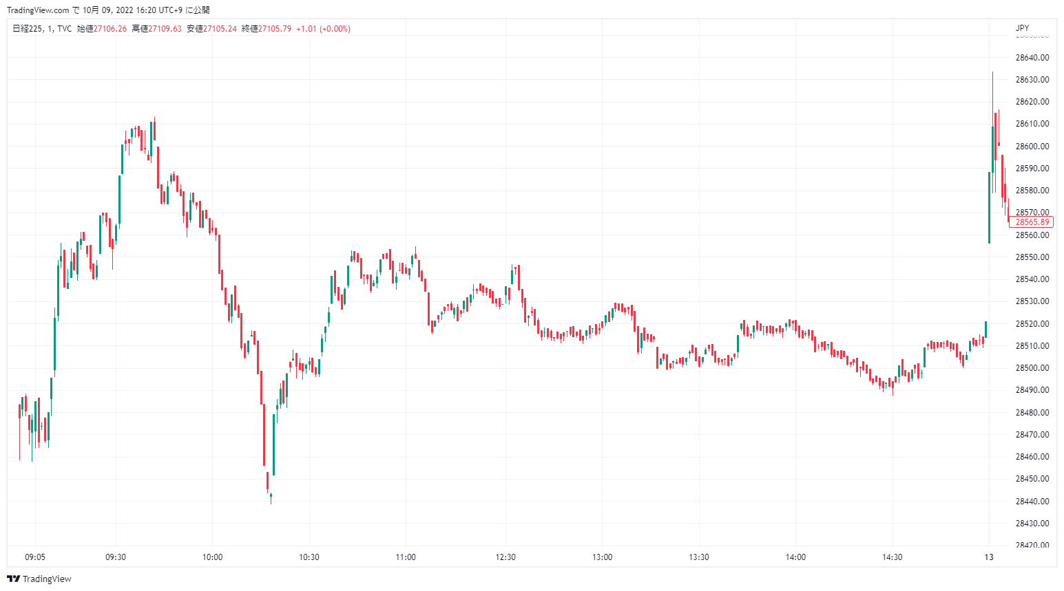 始値 28,483.59 終値 28,542.11 前日比 +327.36