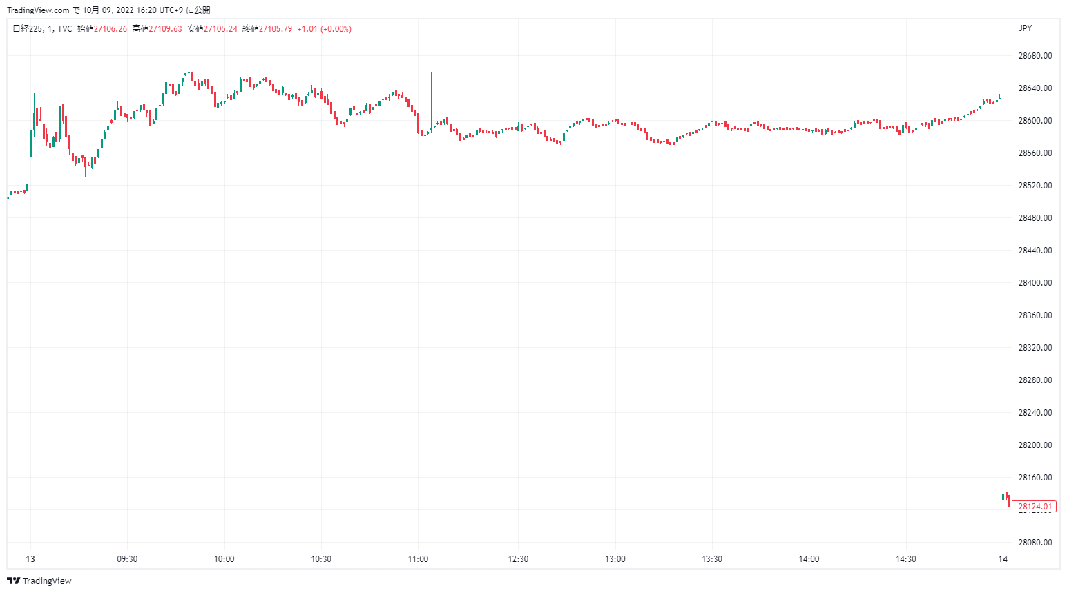 今日も日経平均は凪。上下が130円くらい。ポジションは変えず。
