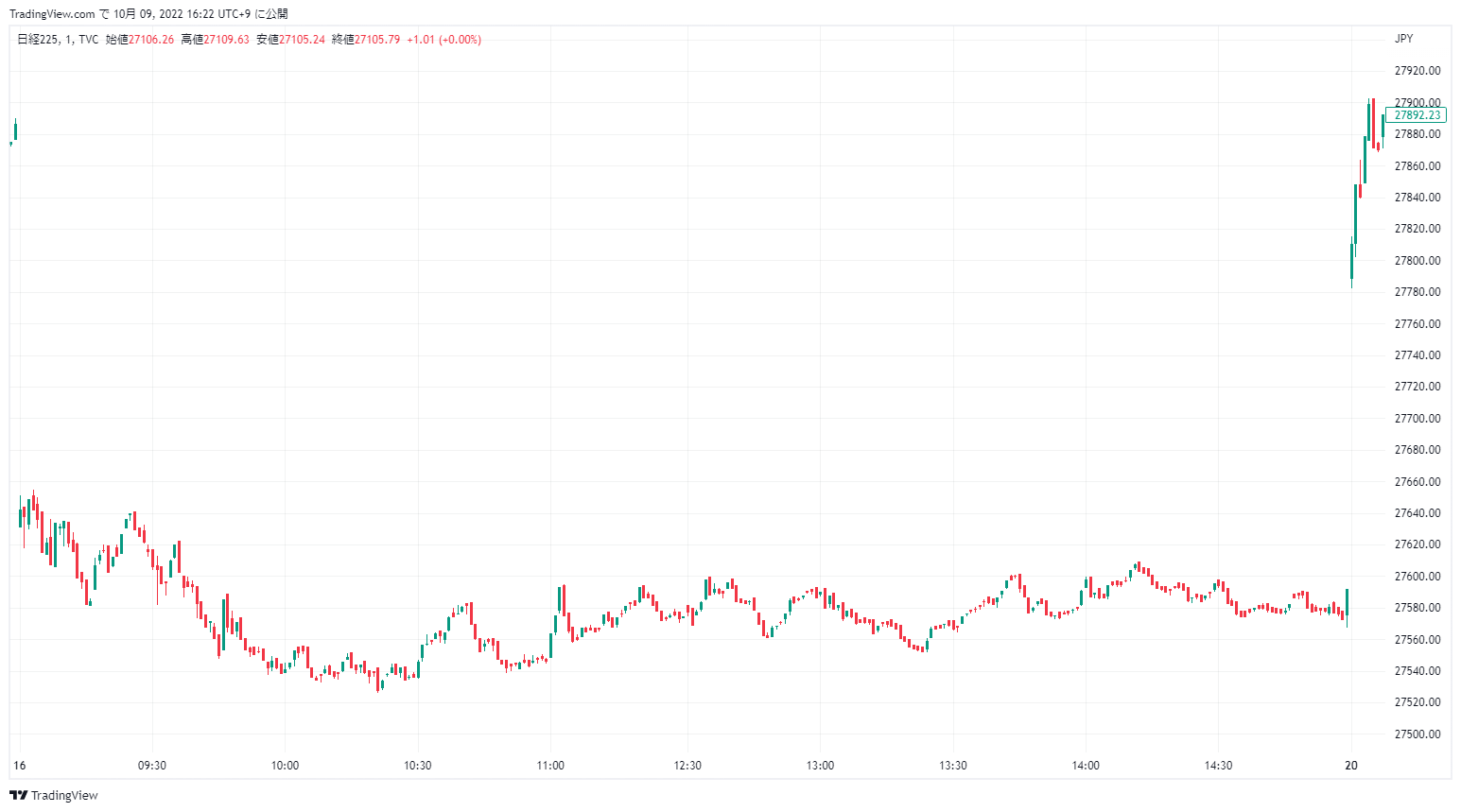 始値 27,631.39 終値 27,567.65 前日比 -308.26