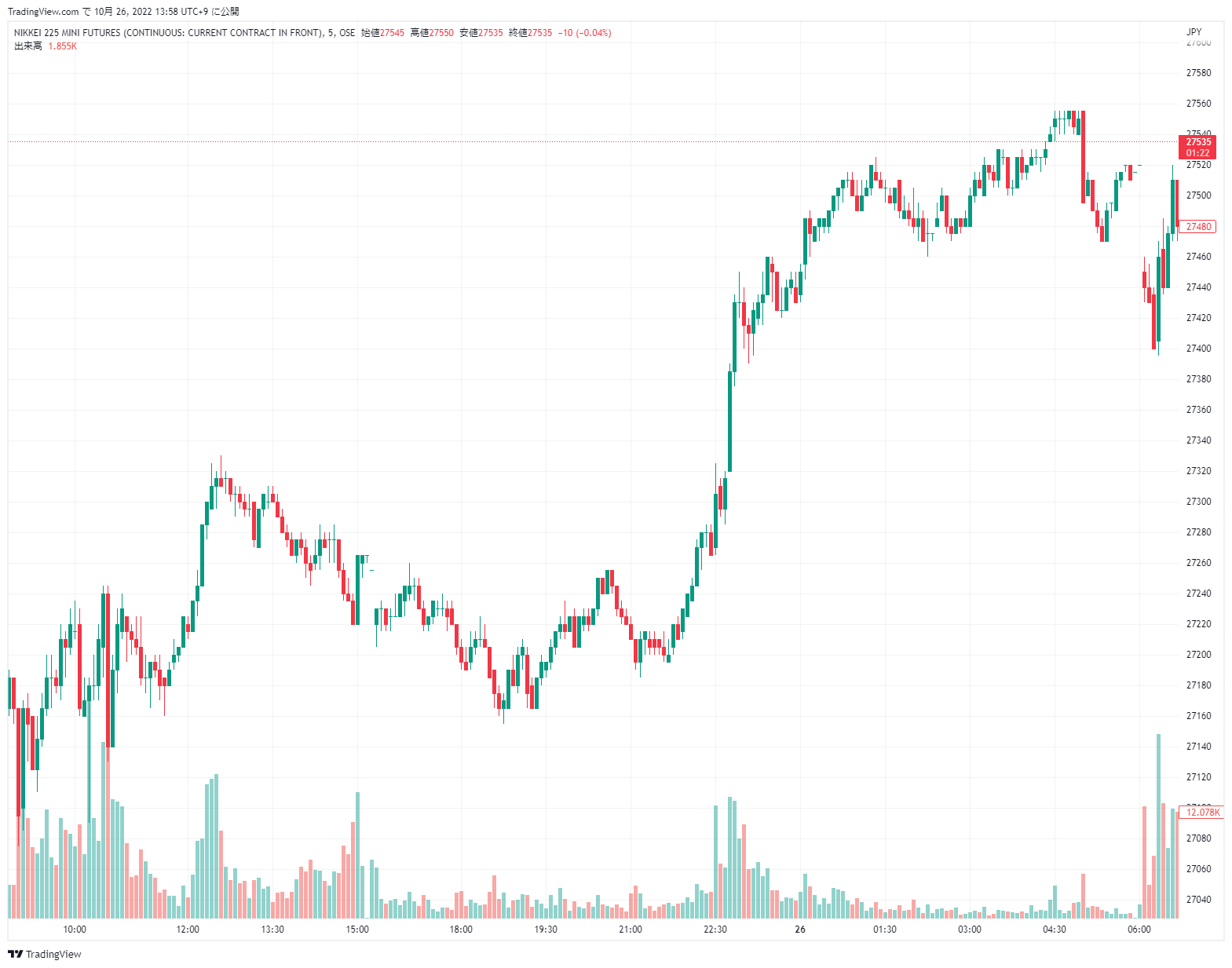 始値 27,113.20 終値 27,250.28 前日比 +275.38