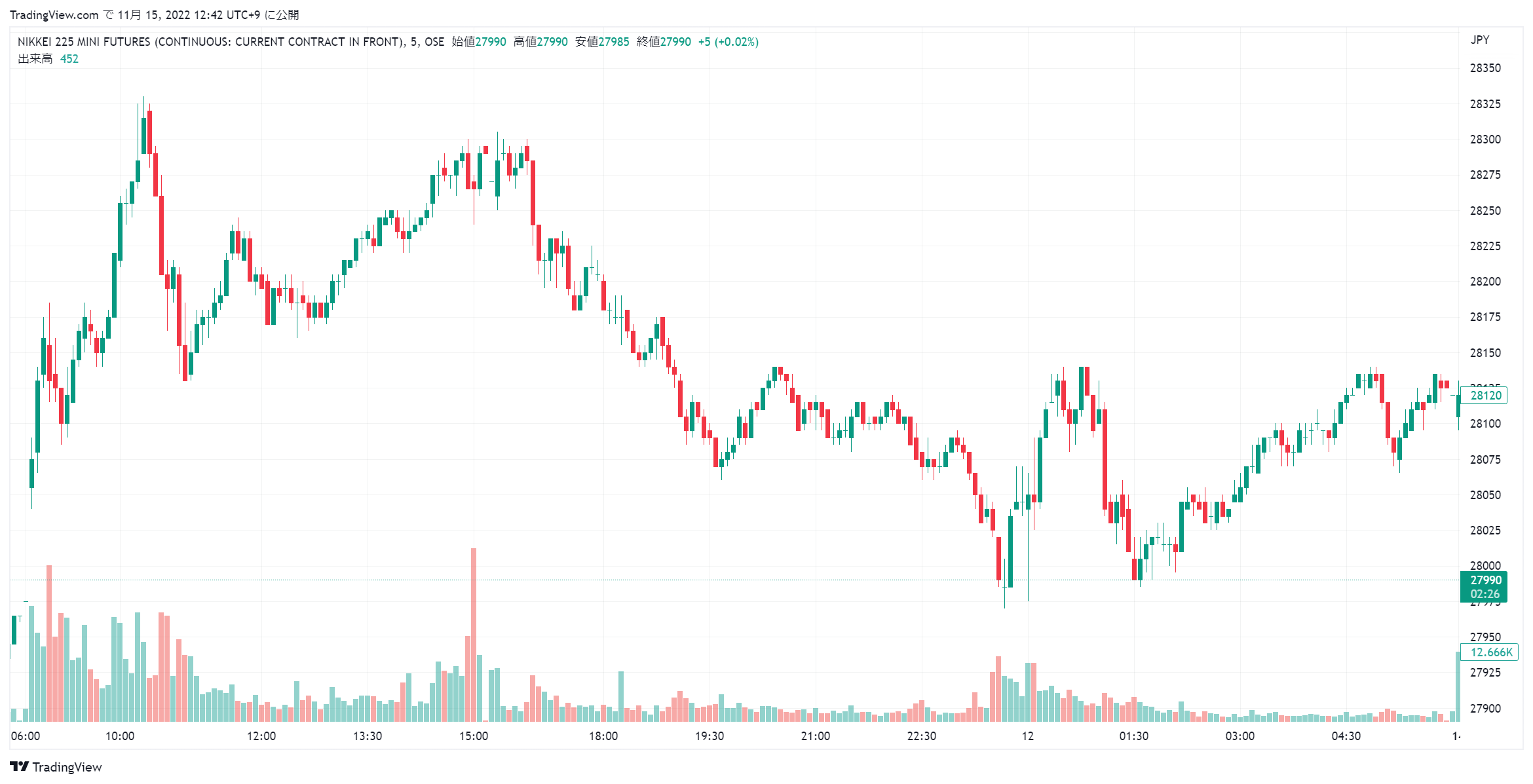 この動きに連れられて11月のSQは28,225.86円に。前日終値が27,446.10円なので800円近くの上昇。なかなか見ない動きでした。