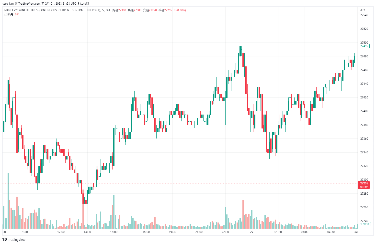 高値 27,502.15円 安値 27,284.08円